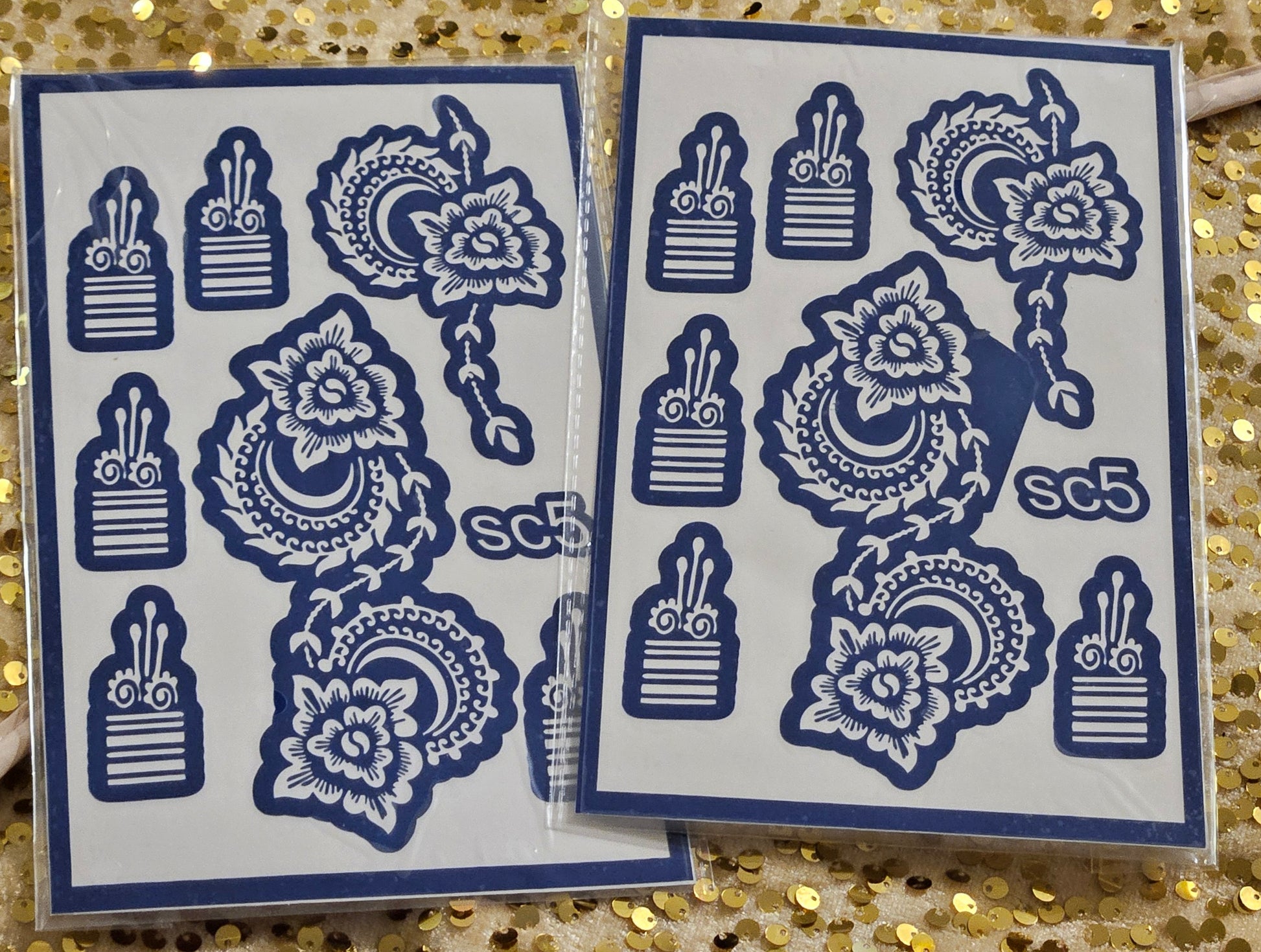 Introducing 'Floral Symphony,' a mesmerizing collection of henna stencils featuring intricate floral designs, delicate swirls, and elegant lines. Each sheet is crafted to help you create stunning, harmonious henna art that will captivate and enchant. Perfect for any occasion, these stencils will add a touch of beauty and sophistication to your creations.